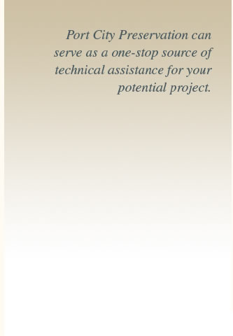 You have a vacant or threatened historic building that is a real eyesore in your downtown. Your non profit organization has made the decision to rehabilitate your present historic building. Or you are a town, village or city that wants to find a way to protect your disappearing historic resources and create economic incentives to stimulate investment. These are three common stories that we hear each and every day. What do I do next? This preparatory planning work helps to chart a clearly defined course of action that translates into better management of the overall risk. Port City Preservation’s broad base of experience gives us the ability to provide you with the technical assistance, strategic planning and feasibility analysis to chart your course for success. From examining the physical characteristics of your building, to developing preliminary cost estimates, to financing options, Port City Preservation can serve as a one-stop source of technical assistance for your potential project.